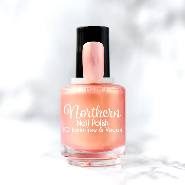 Laughing All the Way: Pink Gold Shimmer nail polish. Large 15mL/.5oz bottle size.